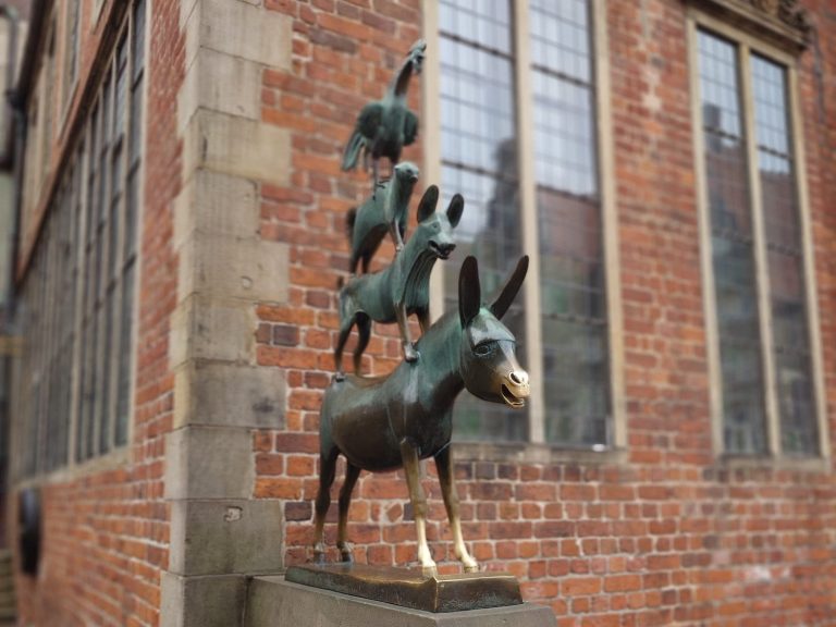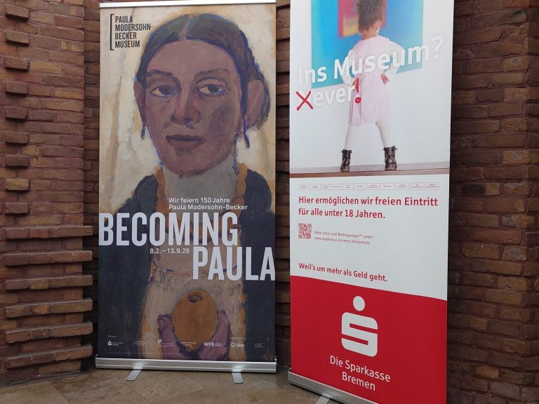 Eine liebevolle Begrüßung zu Beginn unseres Besuches in Bremen, die Wolken verziehen sich rasch und wir laufen vom Bahnhof in die Innenstadt. Klar, die Stadtmusikanten müssen sein, doch dann folgt der Besuch bei Paula Modersohn-Becker im Museum an der Böttcherstraße. Beeindruckend. Bevor wir mit dem Bus nach Worpswede aufbrechen, brauchen wir dringend eine Pause, die wir mit Kaffee und Kuchen begehen. Gut, dass wir noch auf dem Stuhl sitzen, denn der Kellner legt uns eine sehr hohe Rechnung auf den Tisch.